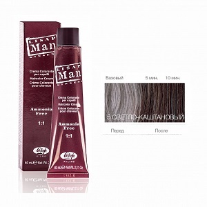 Безаммиачный профессиональный крем-краситель для мужчин LISAP MAN COLOR закрашивает седину за пять минут, создавая эффект насыщенного натурального цвета. Обеспечивает естественный результат с нейтральным (ни теплым и ни холодным) оттенком и полное отсутствие эффекта 'отросших корней' - оттенок постепенно исчезает за 5-6 недель.